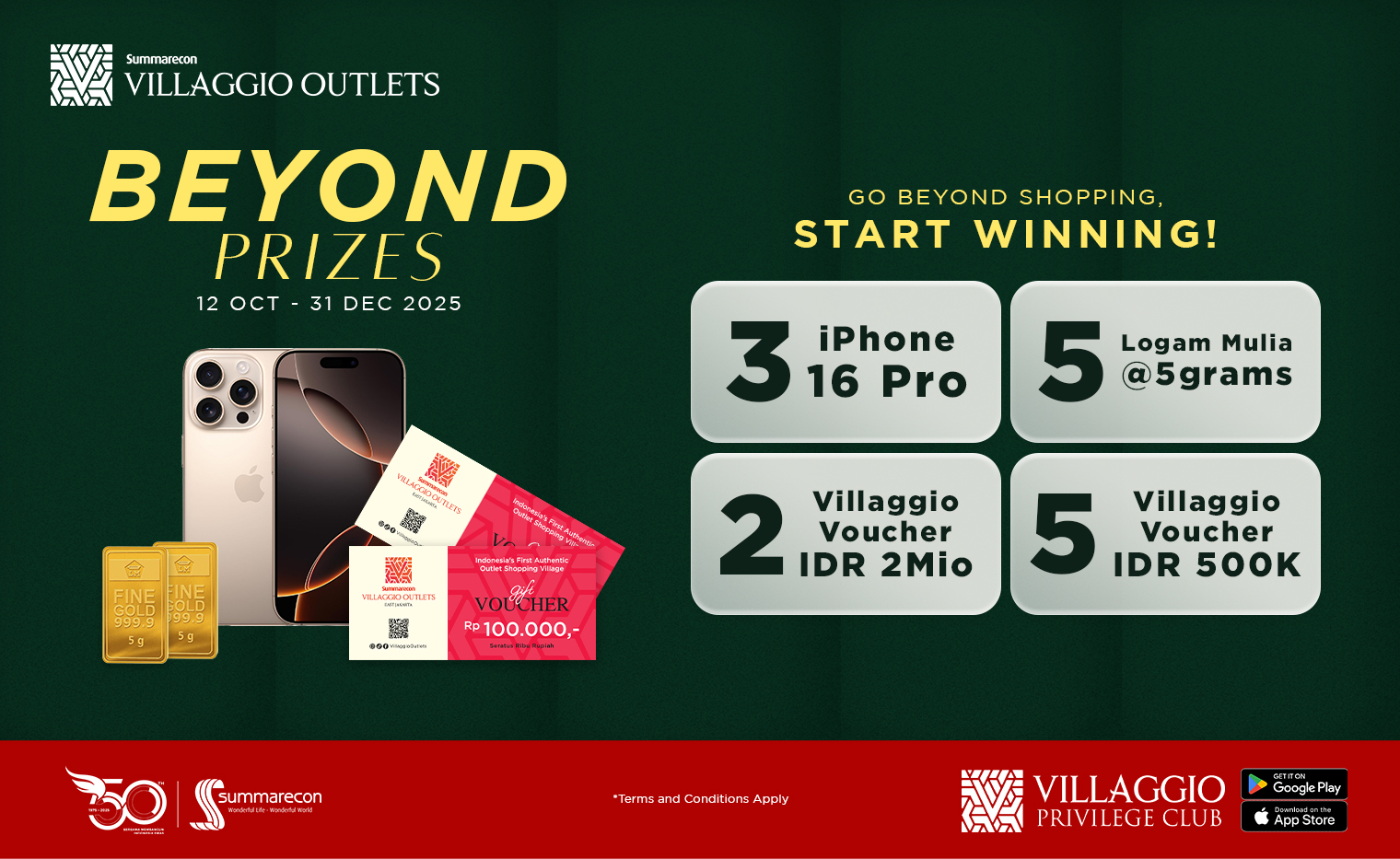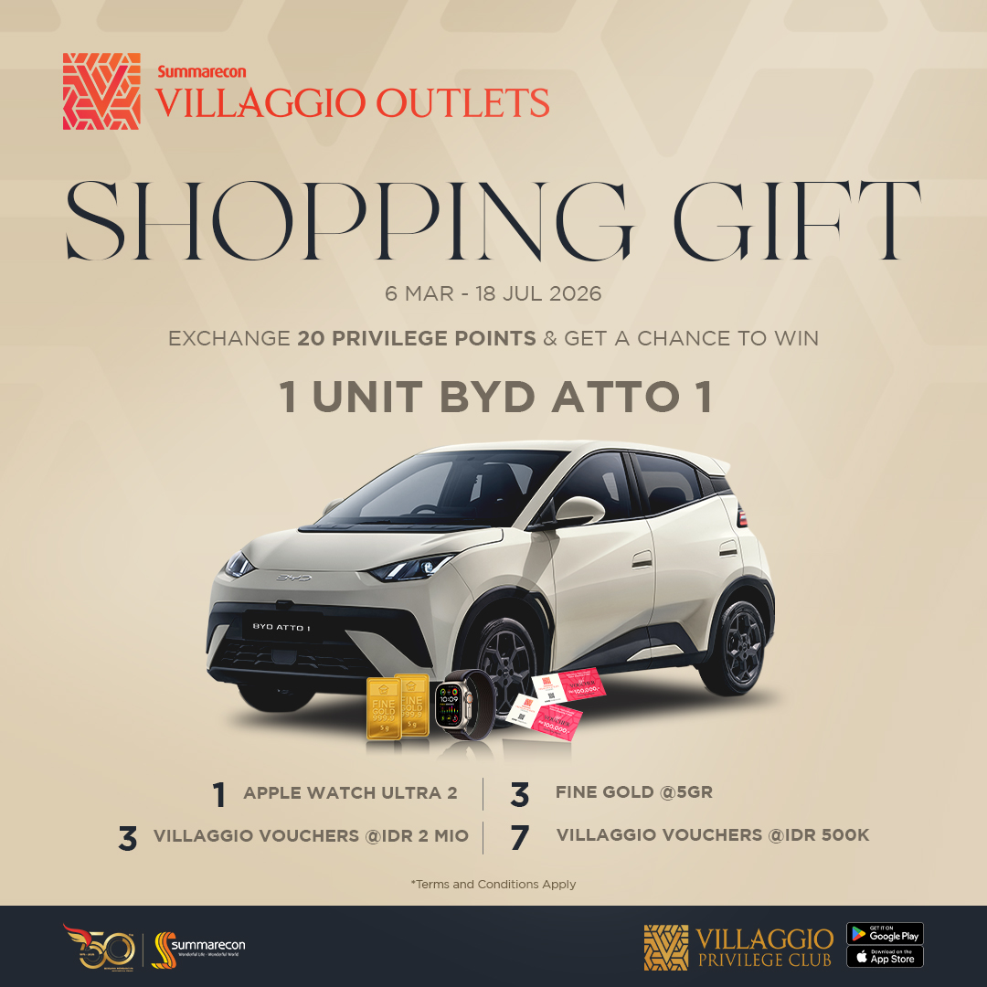 Summarecon Villaggio Outlets - Indonesia’s First Authentic Outlet Shopping Village, a world-class Outlet shopping destination in a European-style village setting.